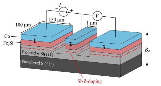 Спиновый сигнал обратный знаку спиновой аккумуляции при комнатной температуре в устройстве на основе кремния, используя атомарно гладкий контакт Fe3Si/Si(111)