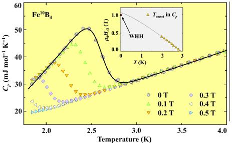 Верхнее критическое поле составило Нс2(0) = 1.05 Тл. Изотопическое замещение атомов бора приводит к изменению Тс, то есть сверхпроводимость, как и ожидалось, имеет фононную природу, что необычно для соединений железа. FeB4 оказался очень прочным материалом: его твердость (62 ГПа) достаточна для конструирования новых сверхпроводниковых наноэлектромеханических систем.