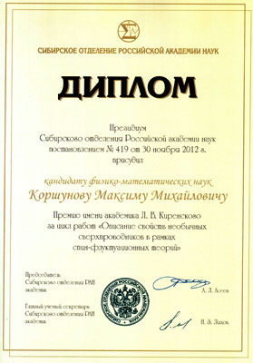 О конкурсе на соискание премии имени академика В.А. Коптюга в 2017 году