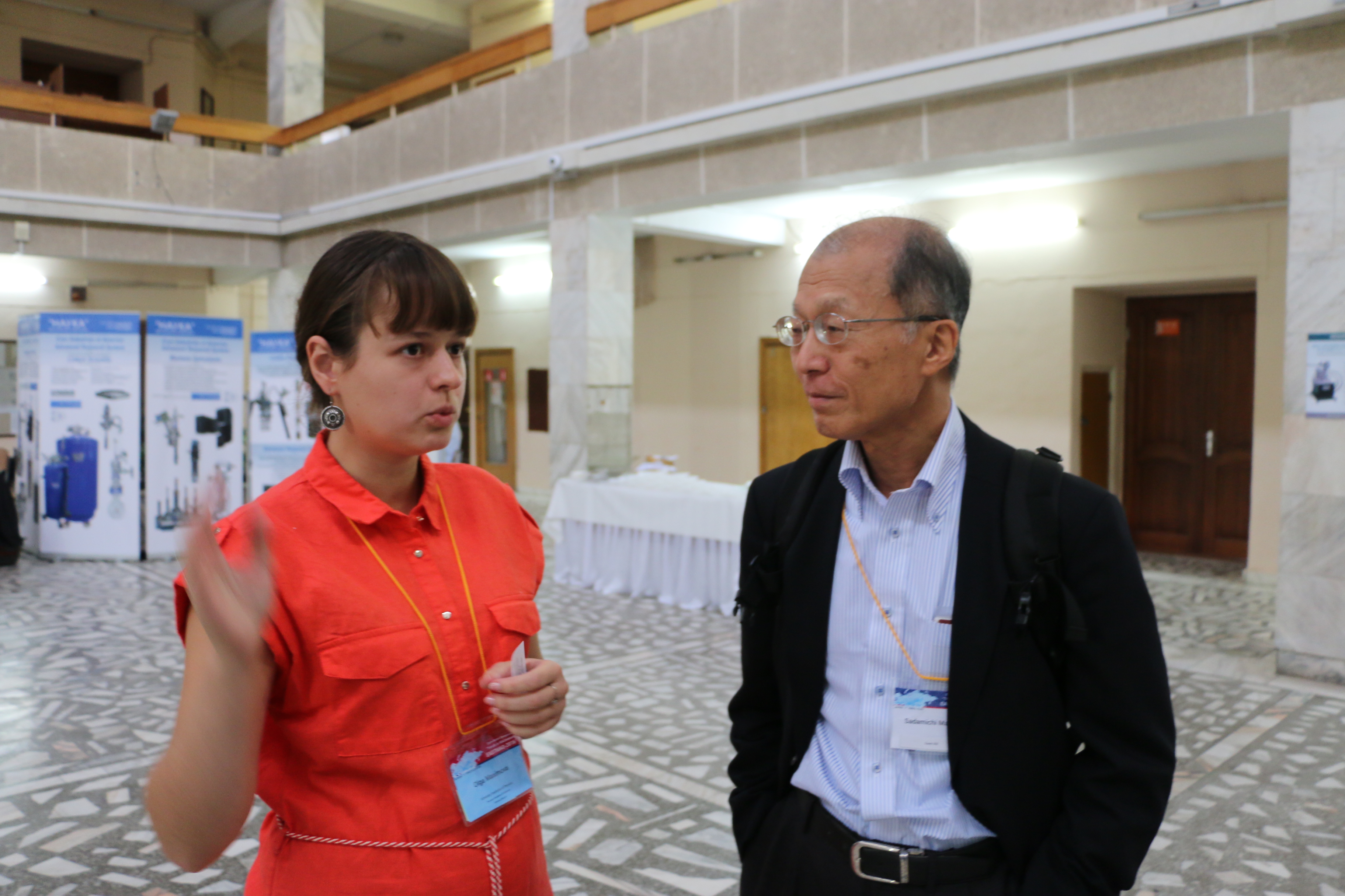 Садамиши Маекава (Научно-исследовательский центр Агентства по атомной энергетике Японии) с секретарём симпозиума EASTMAG-2016, сотрудницей лаборатории ФМЯ ИФ СО РАН Ольгой Максимовой.