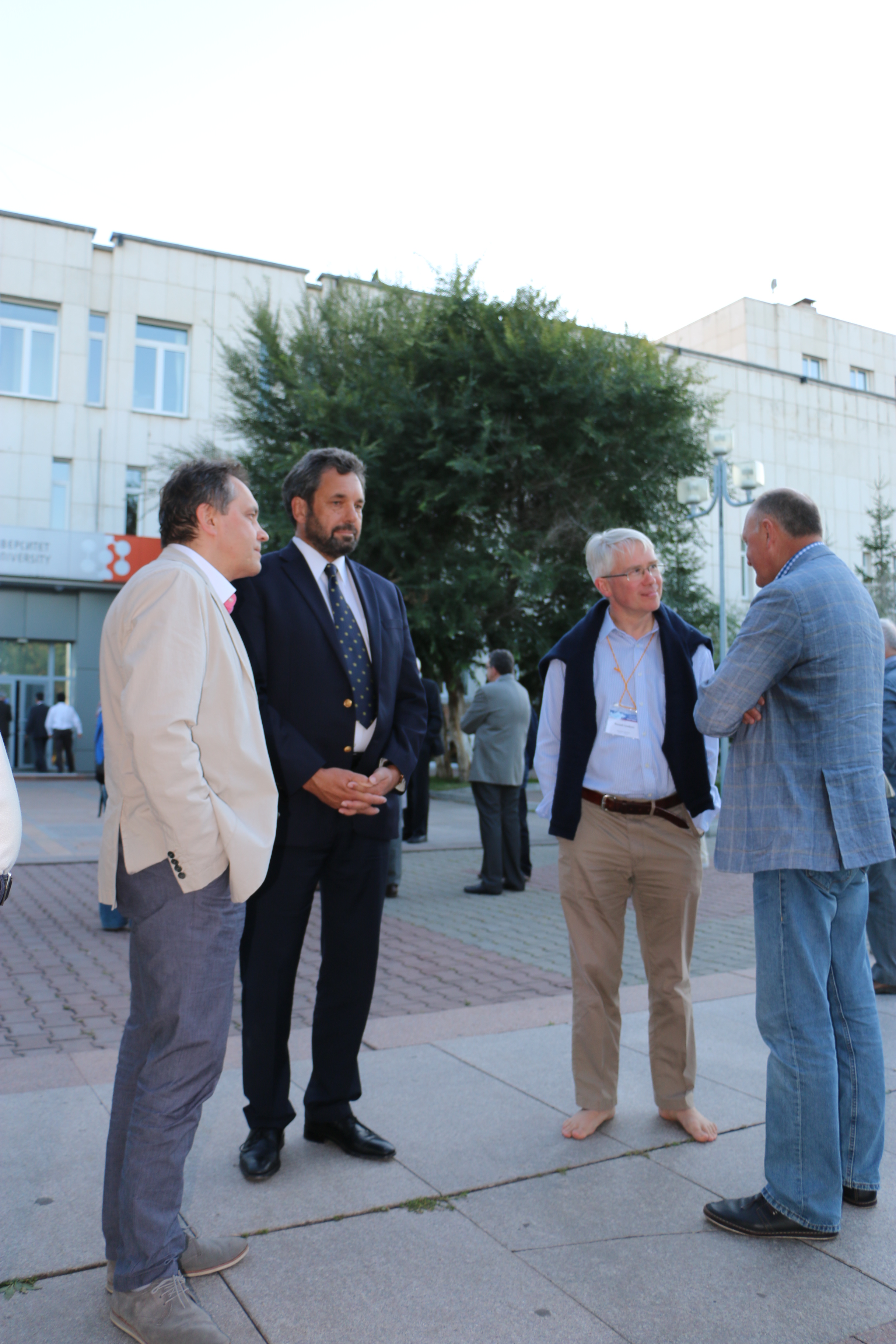 Н.В. Волков, М. Фарле и Р. Каубёрн с членом-корреспондентом РАН, директором Института радиотехники и электроники им. В.А. Котельникова РАН Сергеем Аполлоновичем Никитовым. 18 августа 2016 г.