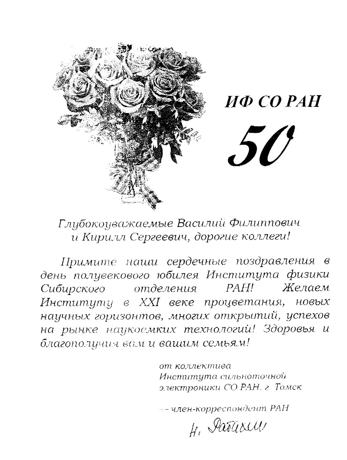 Вы здесь: Главная / Документы / Поздравления с 50-летием Института / Институт сильноточной электроники СО РАН г. Томск