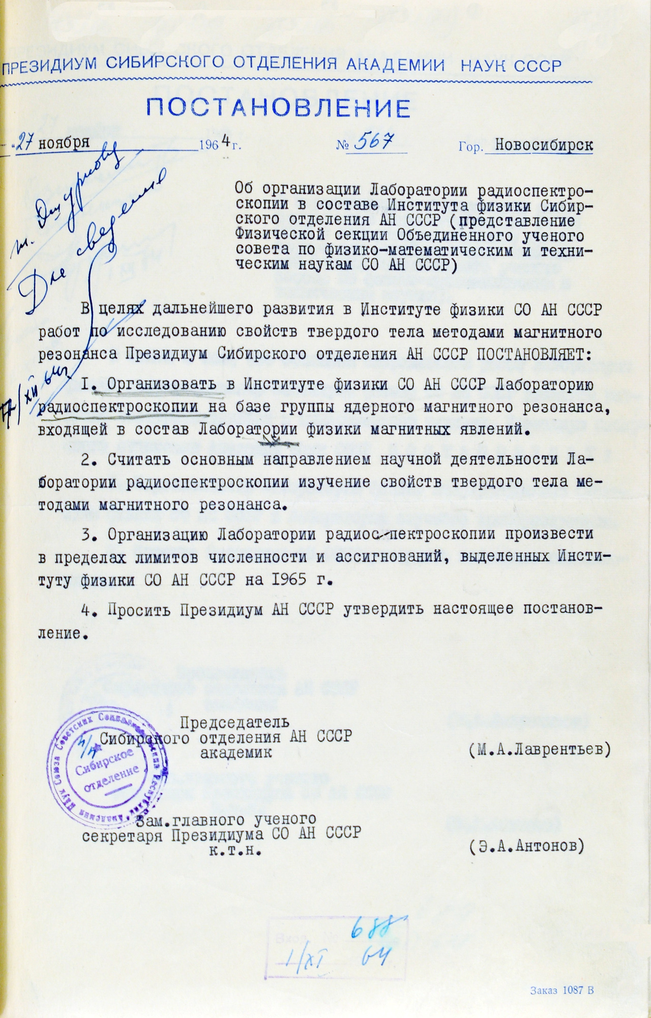 Вы здесь: Главная / Документы / Из архива Института физики / Постановления об организации лабораторий / Об организации лаборатории радиоспектроскопии