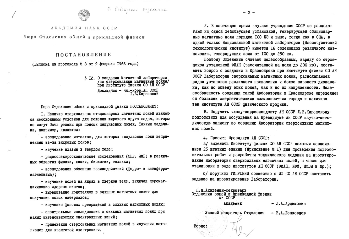Постановление о создании лаборатории сверхсильных магнитных полей