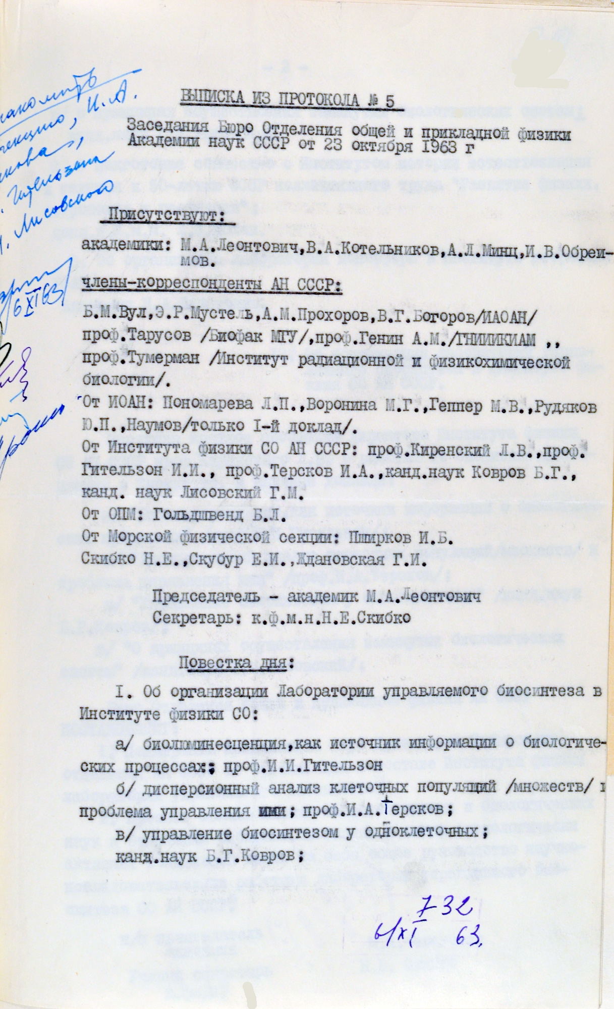 Выписка из протокола об организации лаборатории управляемого биосинтеза