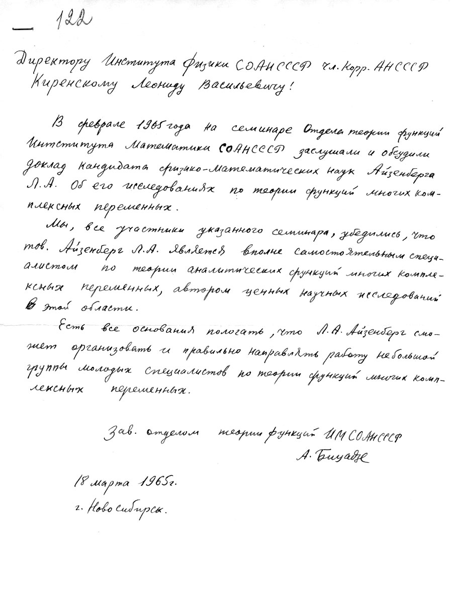 Бицадзе А. зав. отделом теории функций ИМ СО АН СССР
