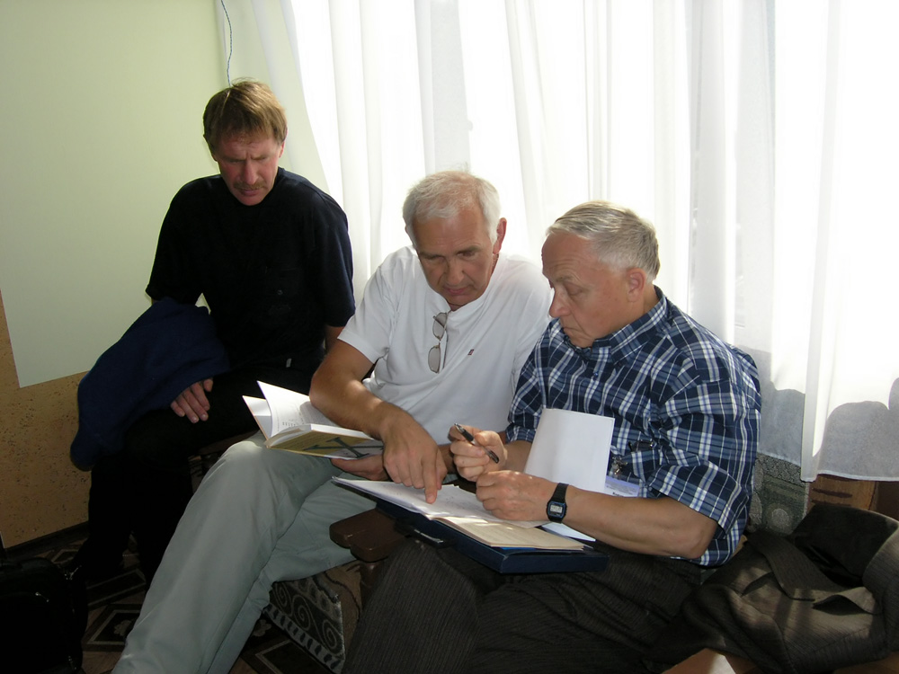 Сотрудники Института физики им. Л.В. Киренского Сибирского отделения Российской академии наук (ИФ СО РАН), слева направо: Гавричков Владимир Александрович, Овчинников Сергей Геннадьевич и Писарев Роман Васильевич, профессор физико-технического института им. А.Ф. Иоффе (Санкт-Петербург), на Евро-Азиатском симпозиуме «Прогресс в магнетизме» (EASTМAG-2004), организованном и проведенном в Красноярске в августе 2004 года.