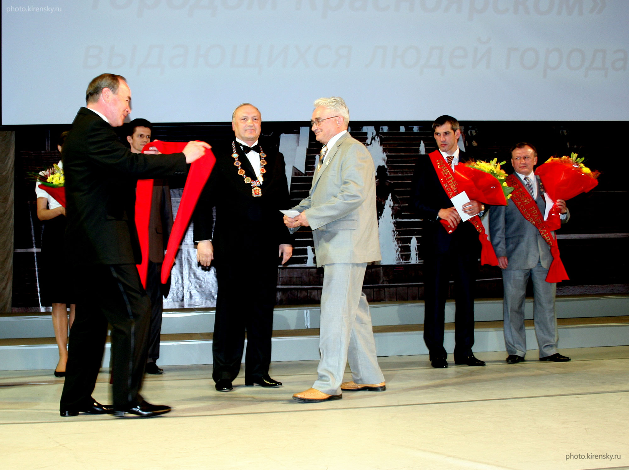 26 мая 2010 года решением Президиума городского Совета народных депутатов Красноярска академику Шабанову Василю Филипповичу, директору Института физики им. Л.В. Киренского Сибирского отделения Российской академии наук, присвоено звание «Почетный гражданин города Красноярска». В центре снимка – мэр города Красноярска Пимашков Пётр Иванович.