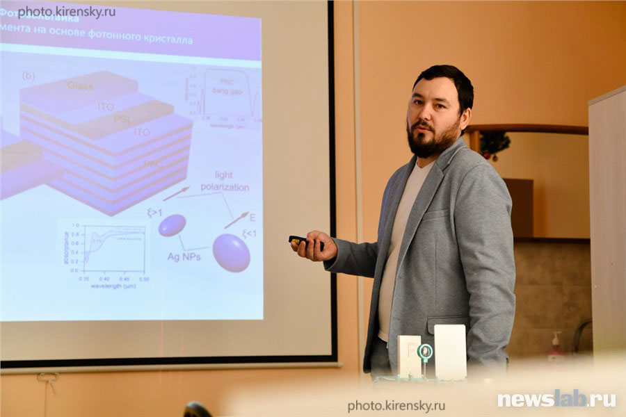 Бикбаев Рашид Гельмединович, кандидат физико-математических наук, старший научный сотрудник лаборатории фотоники молекулярных систем Института физики им. Л.В. Киренского Сибирского отделения Российской академии наук, показывает новый тип солнечной батареи с кристаллической подложкой. Снимок 2023 года.