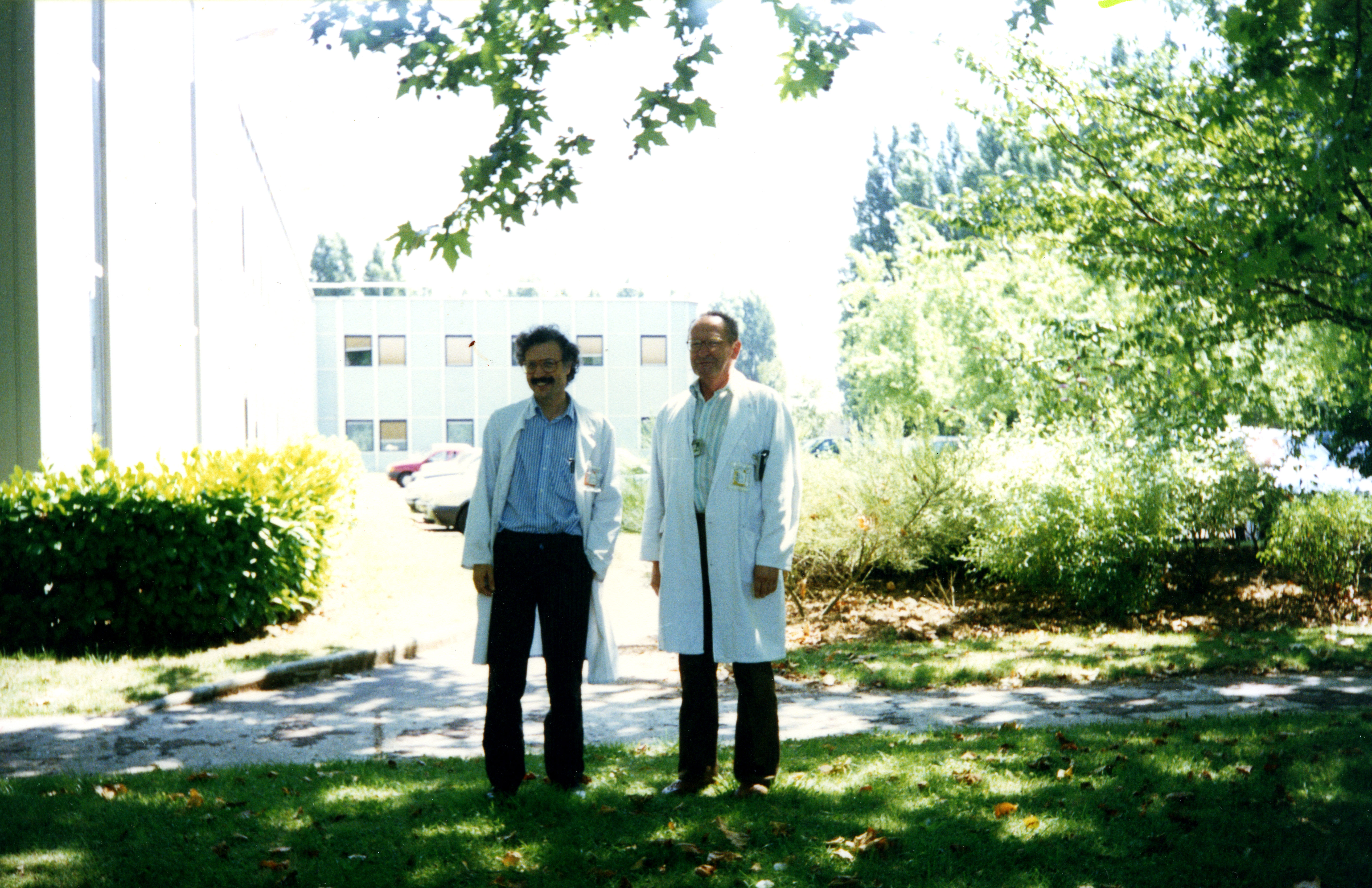Академик Александров К.С.(справа), директор Института физики им. Л.В. Киренского Сибирского отделения Российской академии наук, с профессором Х. Мудденом из Алжира. Нейтронный центр, г. Сакле, Франция, 1995 год.