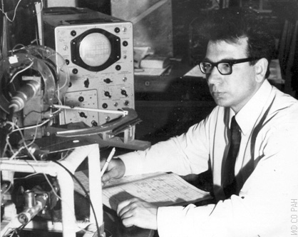 Фролов Георгий Иванович, младший научный сотрудник лаборатории высокочастотных и импульсных свойств тонких магнитных пленок Института физики Сибирского отделения Академии наук СССР (ИФ СО АН СССР), за созданной им установкой для исследования характера процесса импульсного перемагничивания пермаллоевых и ферритовых пленок, 1966 год. Красноярск.
