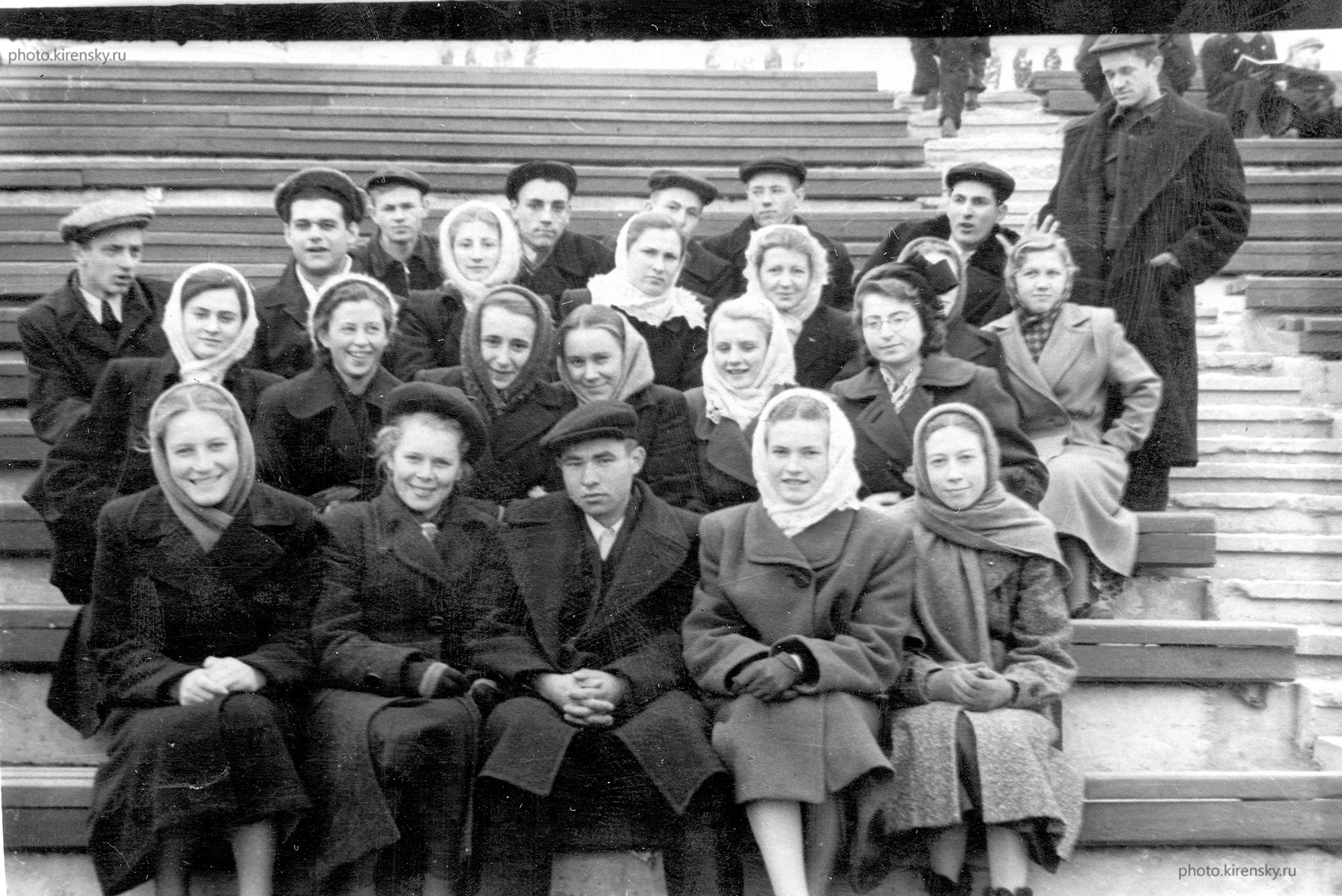 Фото на память. Выпускной курс студентов радиофизического факультета Томского государственного университета им. В.В. Куйбышева в 1958 году. Вторая слева во втором ряду Элеонора Анатольевна Петраковская, кандидат физико-математических наук с 1974 года, старший научный сотрудник лаборатории радиоспектроскопии с 2000 года.