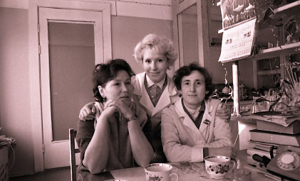 1996 год. Сотрудники лаборатории кристаллофизики Института физики им. Л.В. Киренского Сибирского отделения Российской академии наук, слева направо: Карпенко Г.В., Давыдова Т.Н, Гранкина В.А. Красноярск.