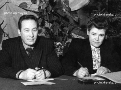 Л.В. Киренский и В.Е. Липкина на кафедре физики Красноярского государственного медицинского института. Леонид Васильевич читал лекции в мединституте. Фото 1953 года