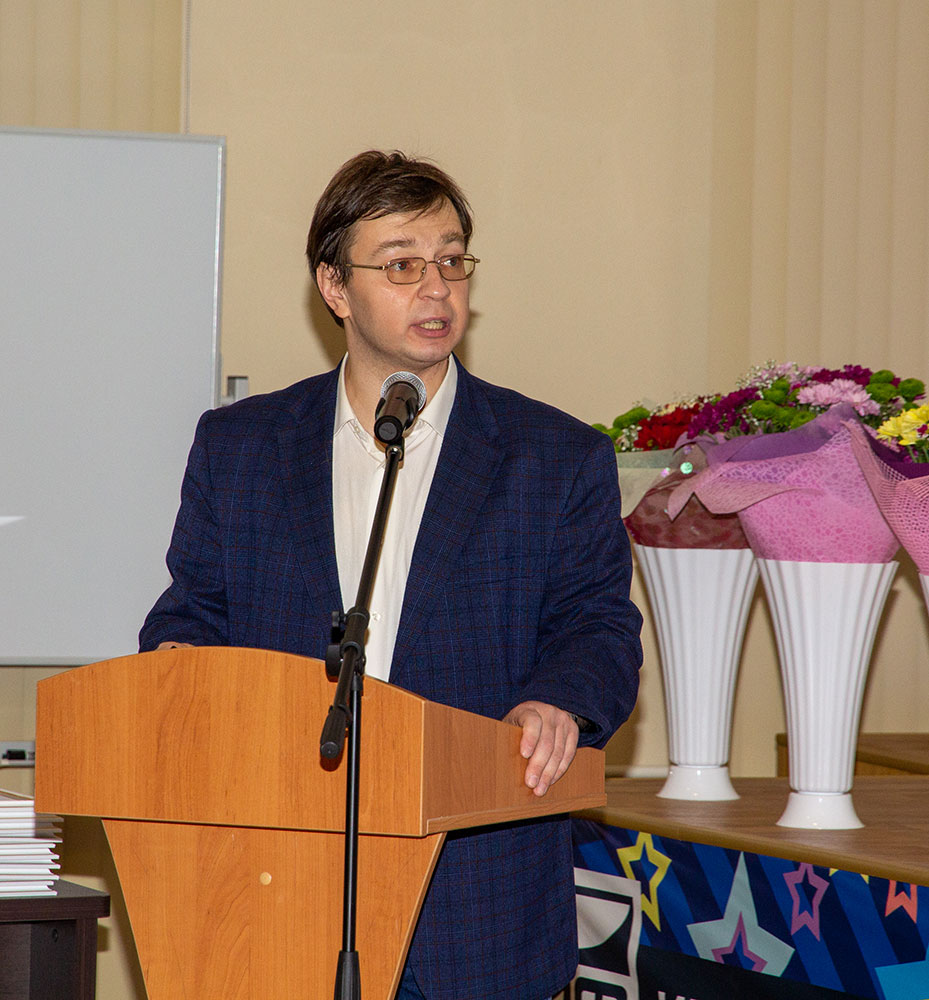 Коршунов Максим Михайлович, доктор физико-математических наук, ведущий научный сотрудник лаборатории физики магнитных явлений Института физики им. Л.В. Киренского Сибирского отделения Российской академии наук, на учёном Совете, посвященном годовщине организации Института физики. Фото 2021 года.