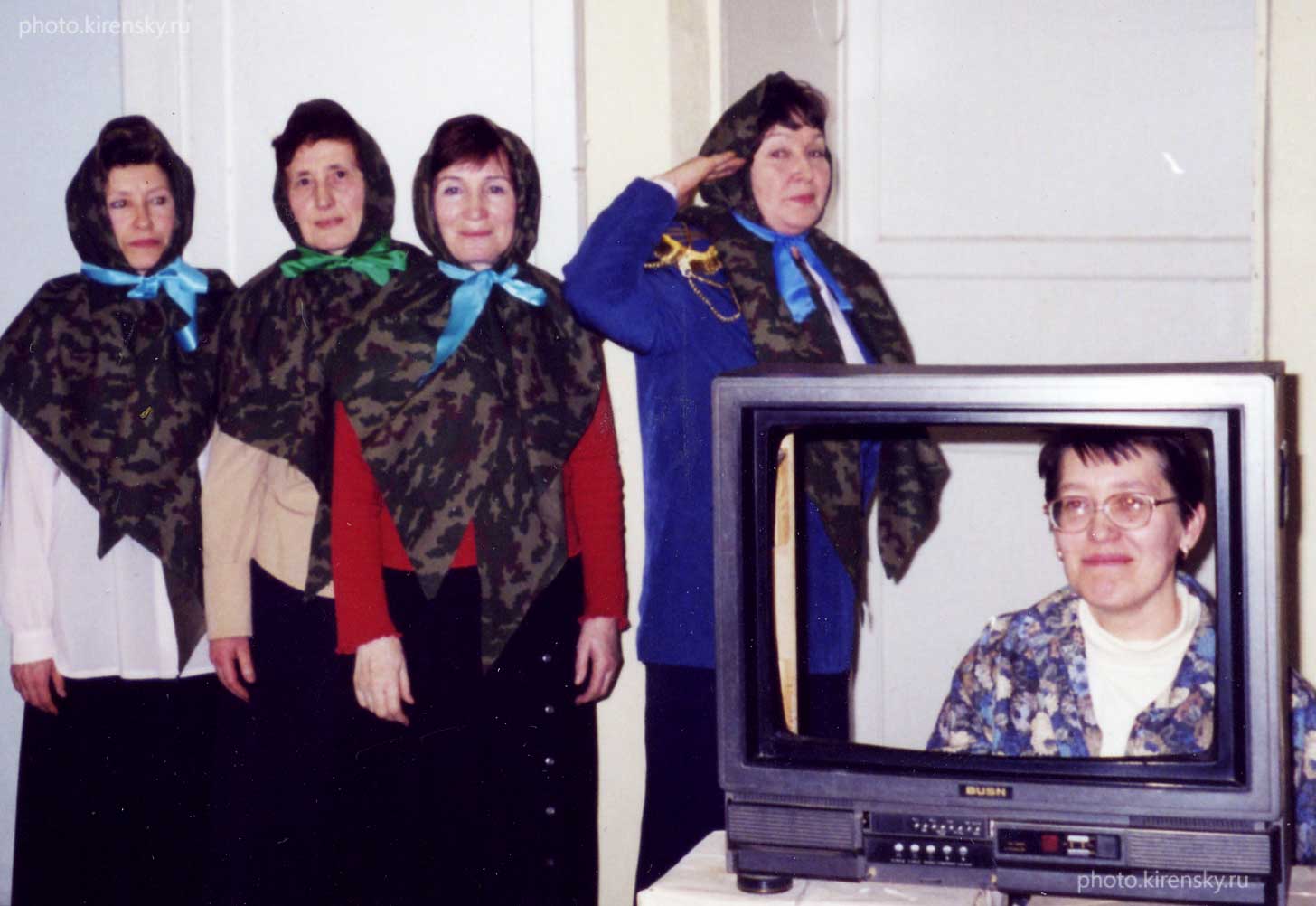 23 февраля 2007 года. В праздник "День защитника Отечества" дамы из лаборатории кристаллофизики Института физики им. Л.В. Киренского Сибирского отделения Российской академии наук (ИФ СО РАН) поздравляют коллег-мужчин с этим замечательным праздником. Слева направо: Давыдова Т.Н., Гранкина В.А., Бовина А.Ф., Мельникова С.В. В роли телеведущей - Замкова Н.Г. Красноярск.