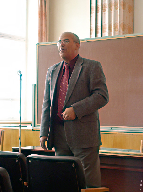 Лекцию в Институте физики читает профессор А. Gedankin (университет Бар-Илан, г. Рамат-Ган, Израиль), Красноярск, ноябрь 2003 года.