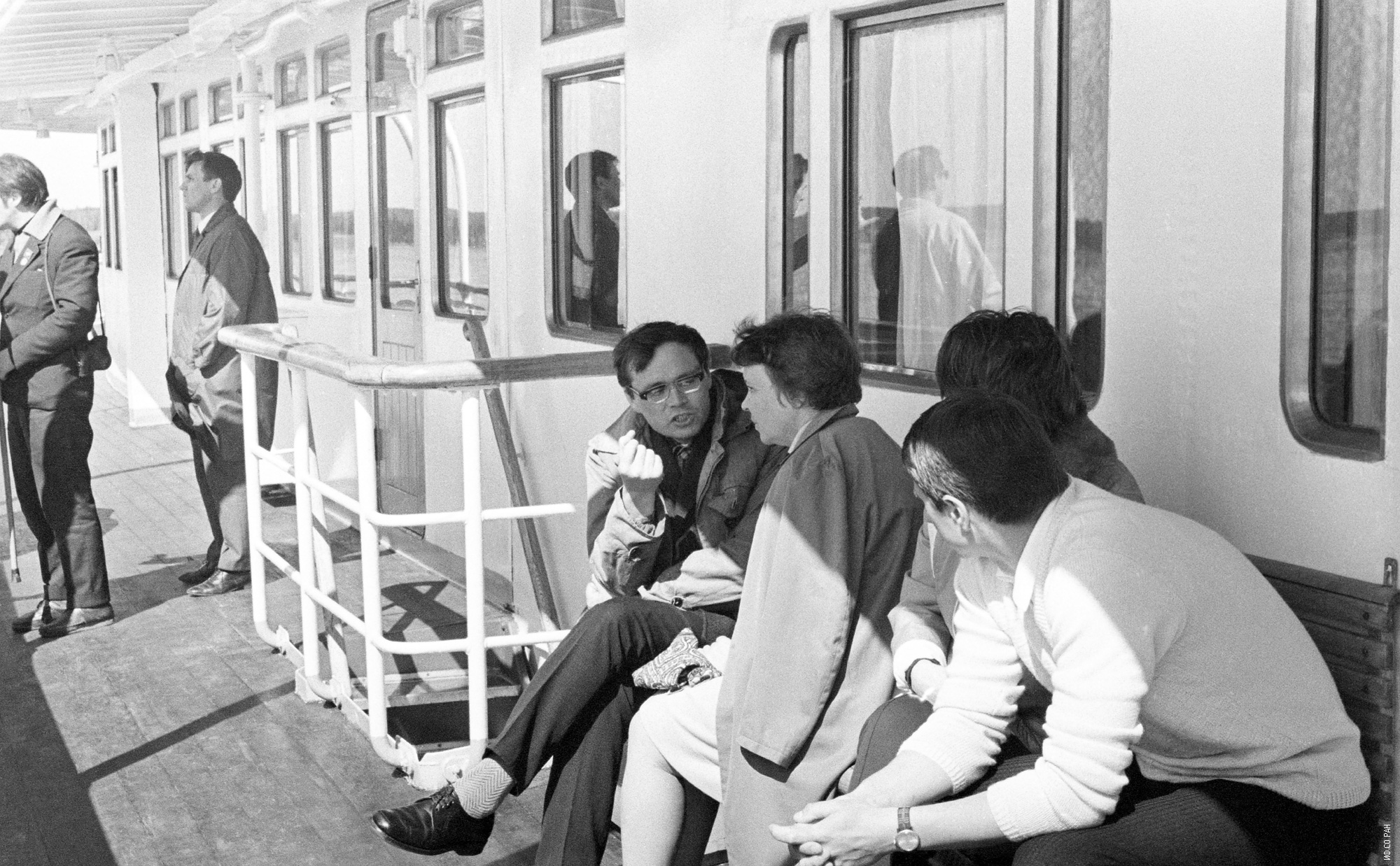 4 июня 1973 года. III -е совещание по биосинтезу и биофизических популяций на теплоходе «В.Чкалов», рейс: Красноярск – Дудинка - Красноярск по Енисею. Совещание было организовано и проведено отделом биофизики Института физики им. Л.В. Киренского Сибирского отделения Академии наук СССР (ИФ СО АН СССР). На снимке участники совещания: В.В. Спиров (слева), Н.Б. Хрипач.