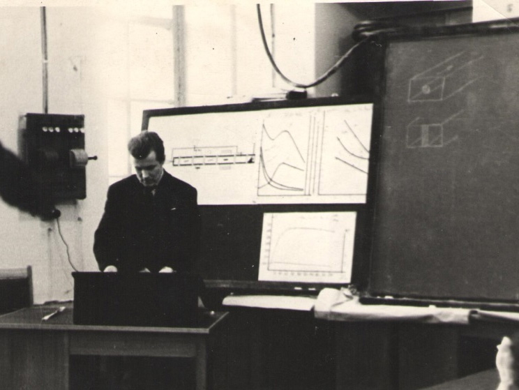 1963 год. Усков В.В, студент пятого курса радиофизического факультета Томского государственного университета им. В.В. Куйбышева, защищает дипломную работу. Томск.