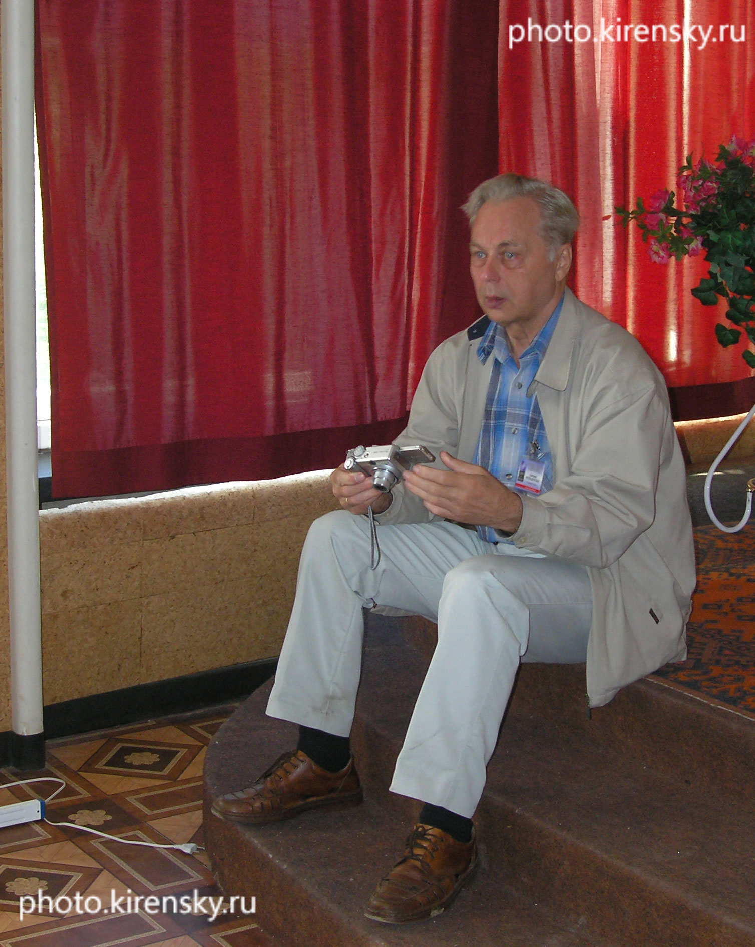 2004 год. В Красноярске проходил Международный семинар NATO Workshop «Smart Materials for Ranging Systems" (Современные материалы для применения в качестве датчиков). Семинар проводился с 29 августа по 1 сентября. В нем приняли участие ученые из России, зарубежных стран и стран СНГ. На снимке: Петраковский Г.А., доктор физико-математических наук, профессор, Заслуженный деятель науки Российской Федерации, заведующий лабораторией резонансных свойств магнитоупорядоченных веществ Института физики им. Л.В. Киренского Сибирского отделения Российской академии наук (ИФ СО РАН), на конференции во время перерыва.
