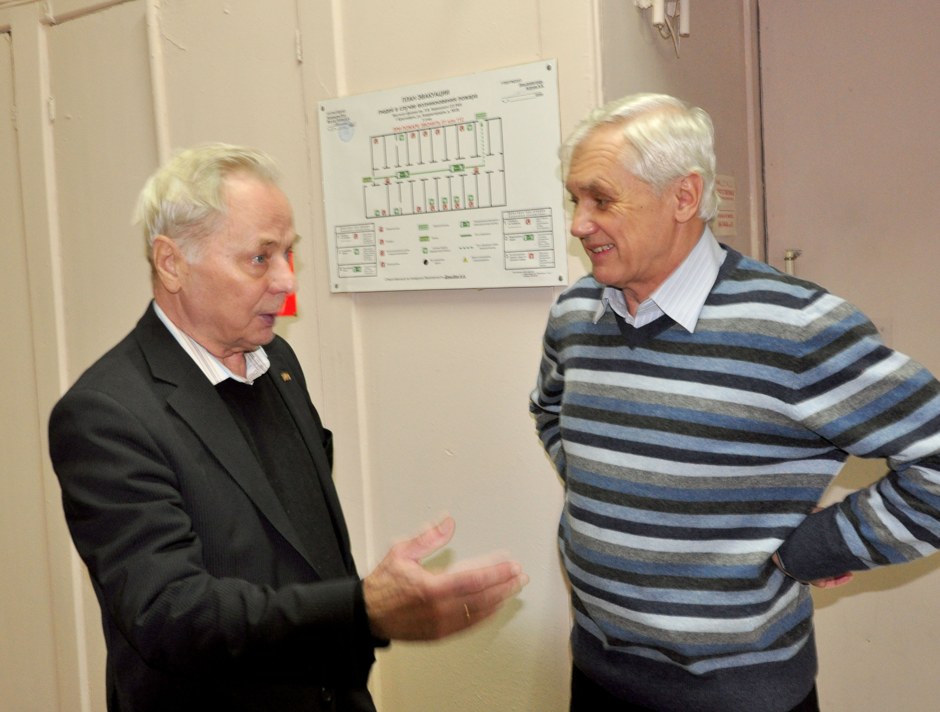 2010 год. Петраковский Г.А. (слева), главный научный сотрудник лаборатории резонансных свойств магнитоупорядоченных веществ Института физики им. Л.В. Киренского Сибирского отделения Российской академии наук (ИФ СО РАН) (возглавлял лабораторию с 1971 по 2008 год) и Панкрац А.И., заведующий лабораторией резонансных свойств магнитоупорядоченных веществ Института физики, в стенах института. Красноярск.