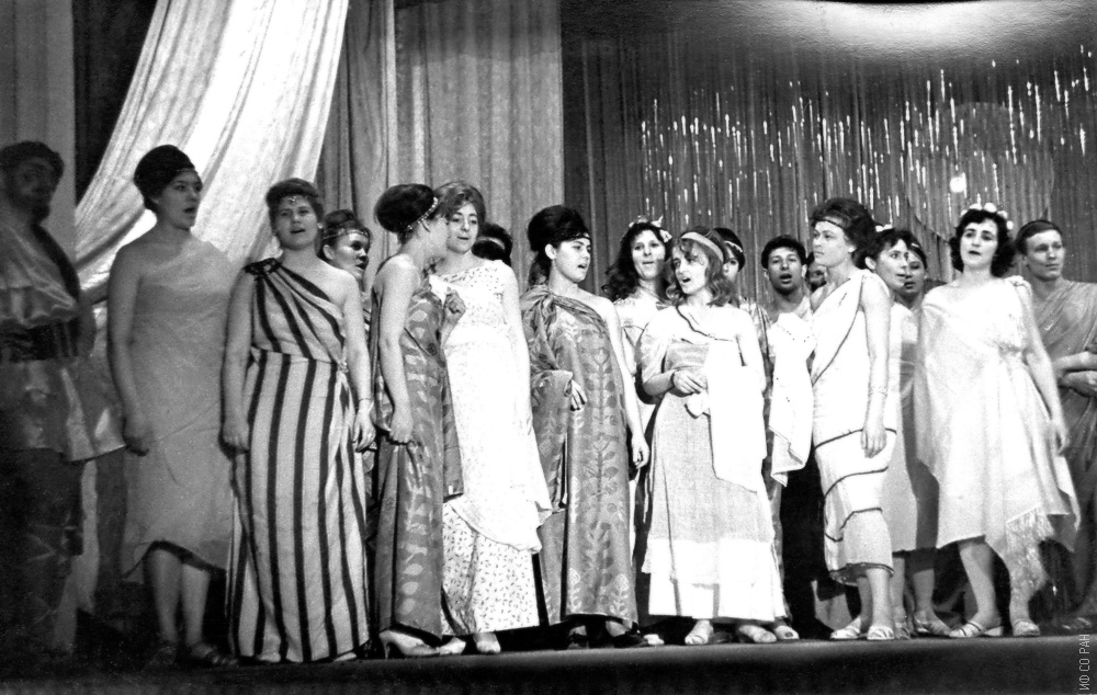 Сцена из оперы «Архимед», поставленной в 1966 году Е.В. Кузьминым (младший научный сотрудник теоротдела), фото 1966 г.
