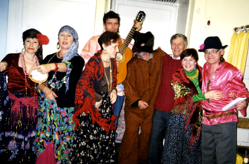 Сотрудники лаборатории кристаллофизики Института физики им. Л.В. Киренского Сибирского отделения Российской академии наук (ИФ СО РАН) поздравляют Зиненко В.И. с 60-ним юбилеем. Слева направо: Давыдова Т.Н., Мельникова С.В., Гранкина В.А., Горев М.В., Зиненко В.И., Бовина А.Ф., Флёров И.Н. С гитарой - Зайцев А.И., фото 2002 года. Красноярск.