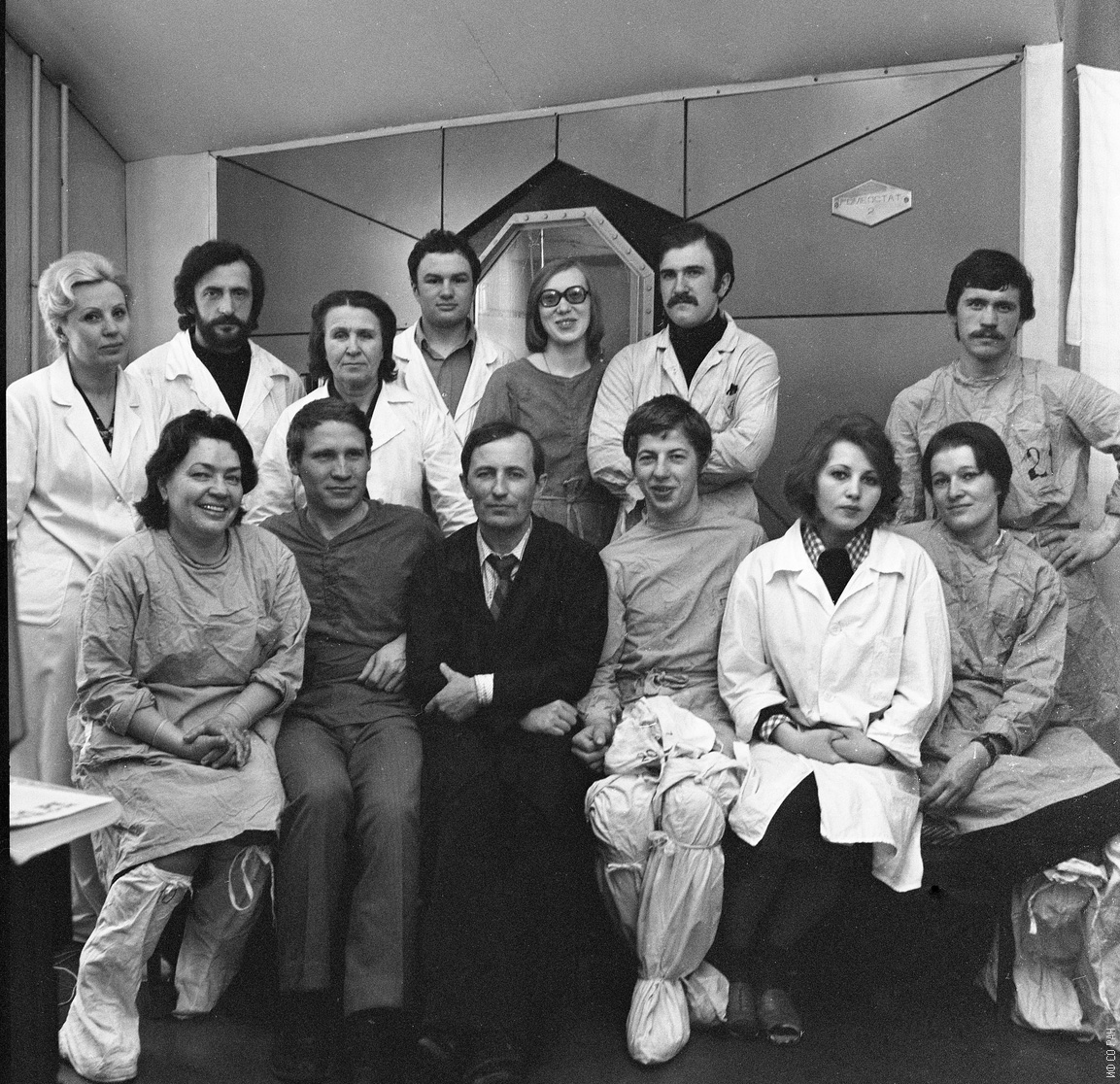 1978 год. Год организации лаборатории биосинтеза животных тканей Института физики им. Л.В. Киренского Сибиирского отделения Академии наук СССР (ИФ СО АН СССР). Доктор биологических наук Нефедов В.П. (сидит, третий слева), заведующий лабораторией. Фото 1978 года. Красноярск.