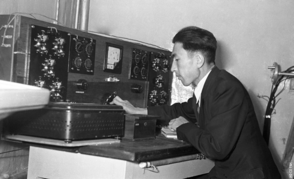 Черкашин В.С., один из первых сотрудников лаборатории физики магнитных явлений, вошедшей совместно с лабораторией биофизики и лабораторией спектроскопии в состав института с момента его образования в 1956 году, фото 1959 года.