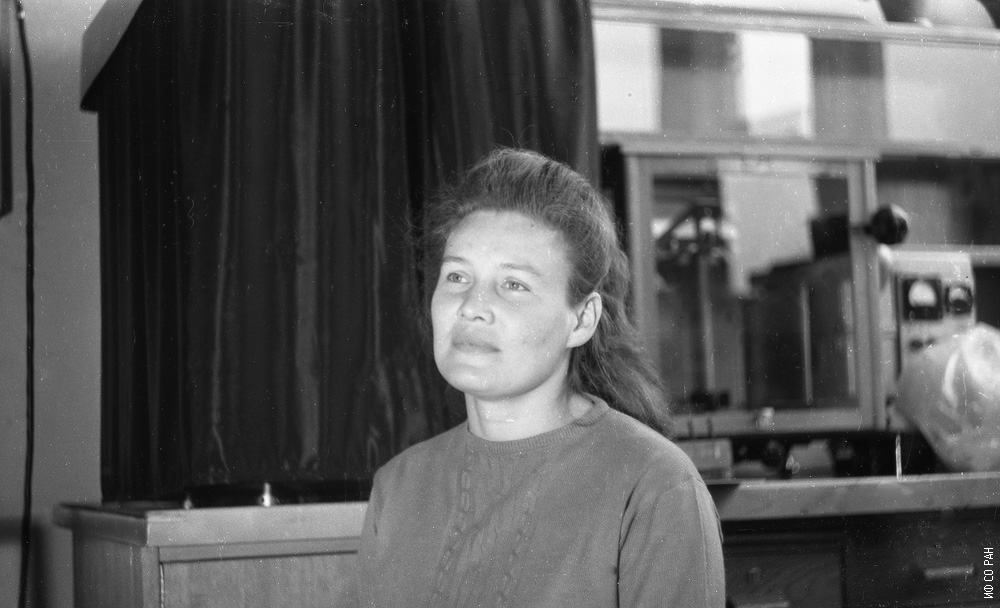 Грибовская И.В., научный сотрудник лаборатории биофизики Института физики им. Л.В. Киренского Сибирского отделения Академии наук СССР (ИФ СО АН СССР), фото 1976 года.