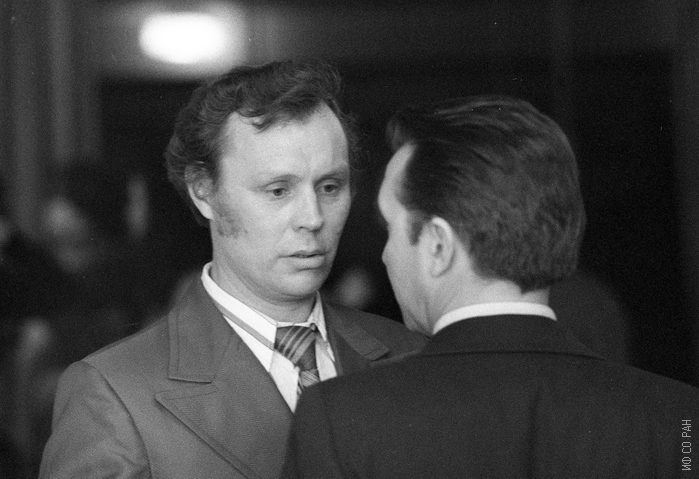Хрусталев Б.П., (слева) заведующий лабораторией сильных магнитных полей Института физики им. Л.В. Киренского Сибирского отделения Академии наук СССР (ИФ СО АН СССР). Снимок 1975 года. Красноярск.