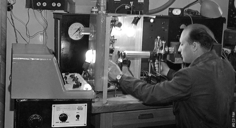 Коршакевич И. И. проводит зондовые измерения потенциалов в плазме дуги, фото 1968 г.