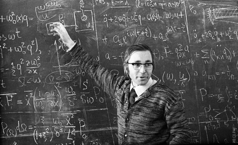 1983 год. Заславский Георгий Моисеевич, заведующий лабораторией нелинейных процессов Института физики им. Л.В. Киренского Сибирского отделения Академии наук СССР (ИФ СО АН СССР), выступает на семинаре теоретического отдела института. Красноярск.