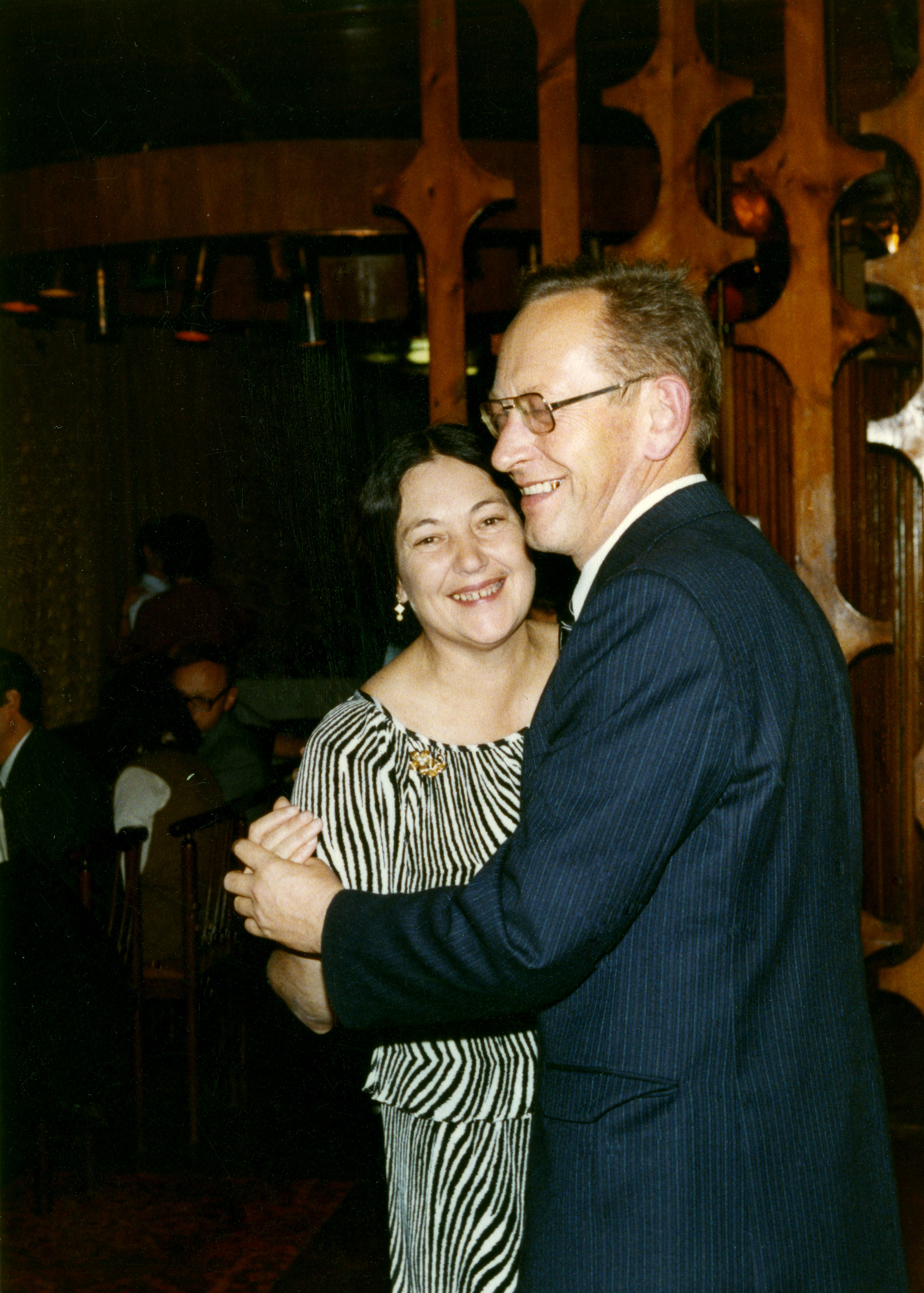 Супруги Инга Петровна Александрова, руководитель лаборатории кинетических процессов Института физики им. Л.В. Киренского Сибирского отделения Академии наук СССР (ИФ СО АН СССР) и Кирилл Сергеевич Александров, директор Института физики СО АН СССР (СО АН СССР с 1991 года - СО РАН), на банкете 3-его Советско-Японского семинара по сегнетоэлектричеству. Новосибирск, 1984 год.