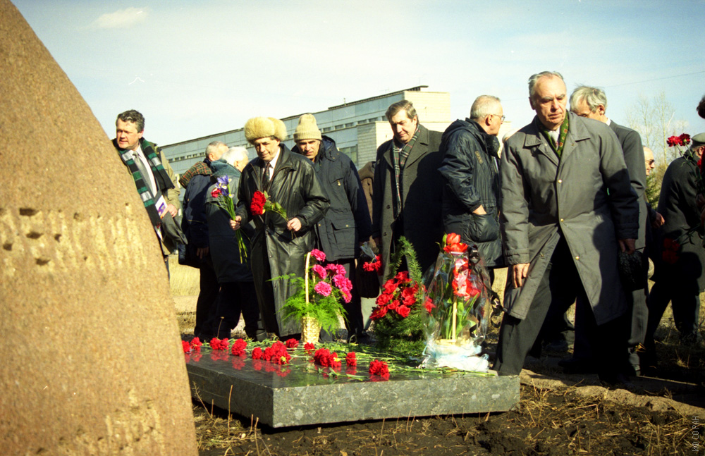 Возложение цветов на могиле Л.В.Киренского, апрель 1995 г.