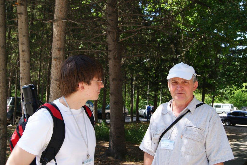 М.С. Платунов (слева) и В.Н. Заблуда, сотрудники лаборатории физики магнитных явлений Института физики им. Л.В. Киренского Сибирского отделения Российской академии наук (ИФ СО РАН), в Академгородке Новосибирска в дни участия в конференции по использованию синхротронного излучения. Конференция проходила в Институте ядерной физики им. Будкера СО РАН, 2012 год.