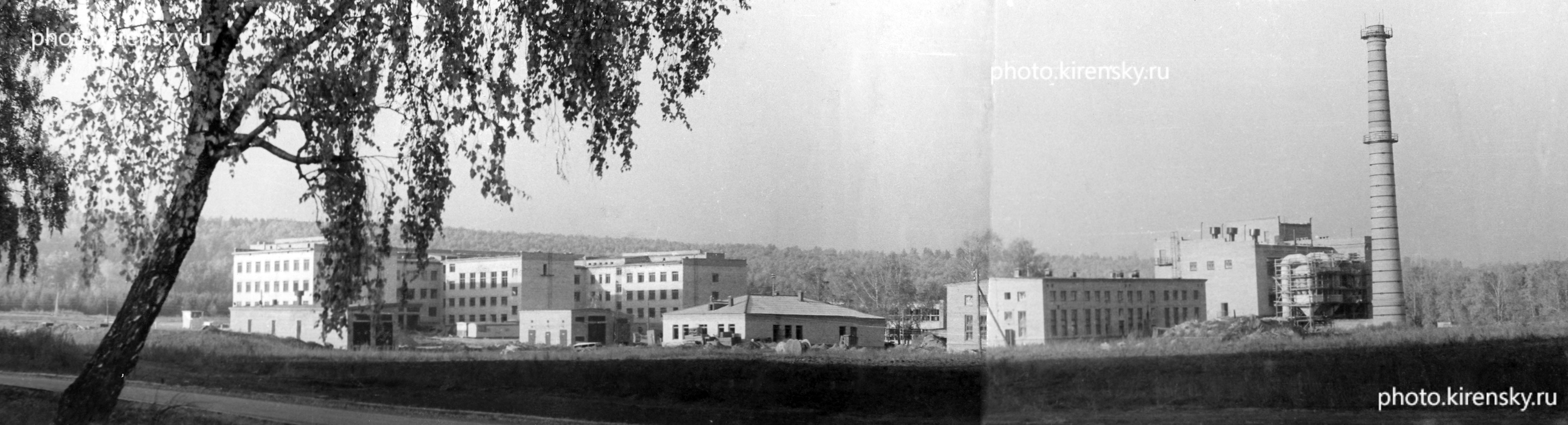 Институт физики в год переезда в Академгородок с введенными в эксплуатацию хозяйственными постройками. Институт, магнитный павильон, котельная. Фото 1967 г.