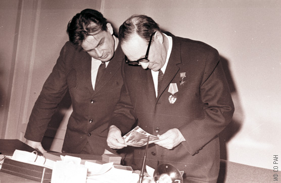 В 1969 году Киренскому Л.В. (справа) было присвоено звание Героя Социалистического Труда. После вручения Ордена Ленина и золотой медали «Серп и молот» в Москве. Рядом с ним Калинин В.В.