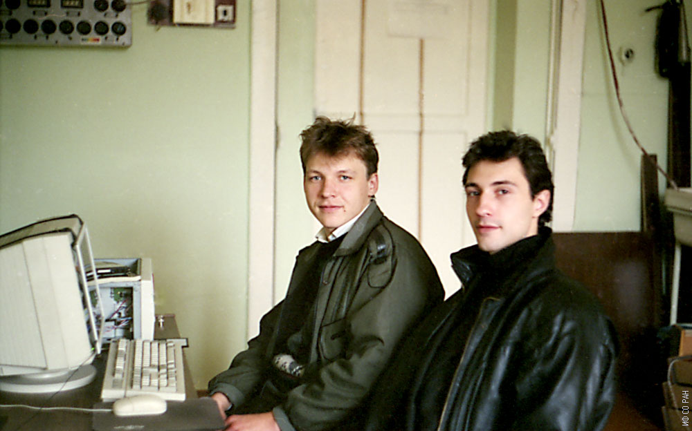 1995 год. Инженер Андрей Агеев (слева) и аспирант Олег Флейшер в компьютерном классе Института физики им. Л.В. Киренского Сибирского отделения Российской академии наук (ИФ СО РАН). Красноярск.