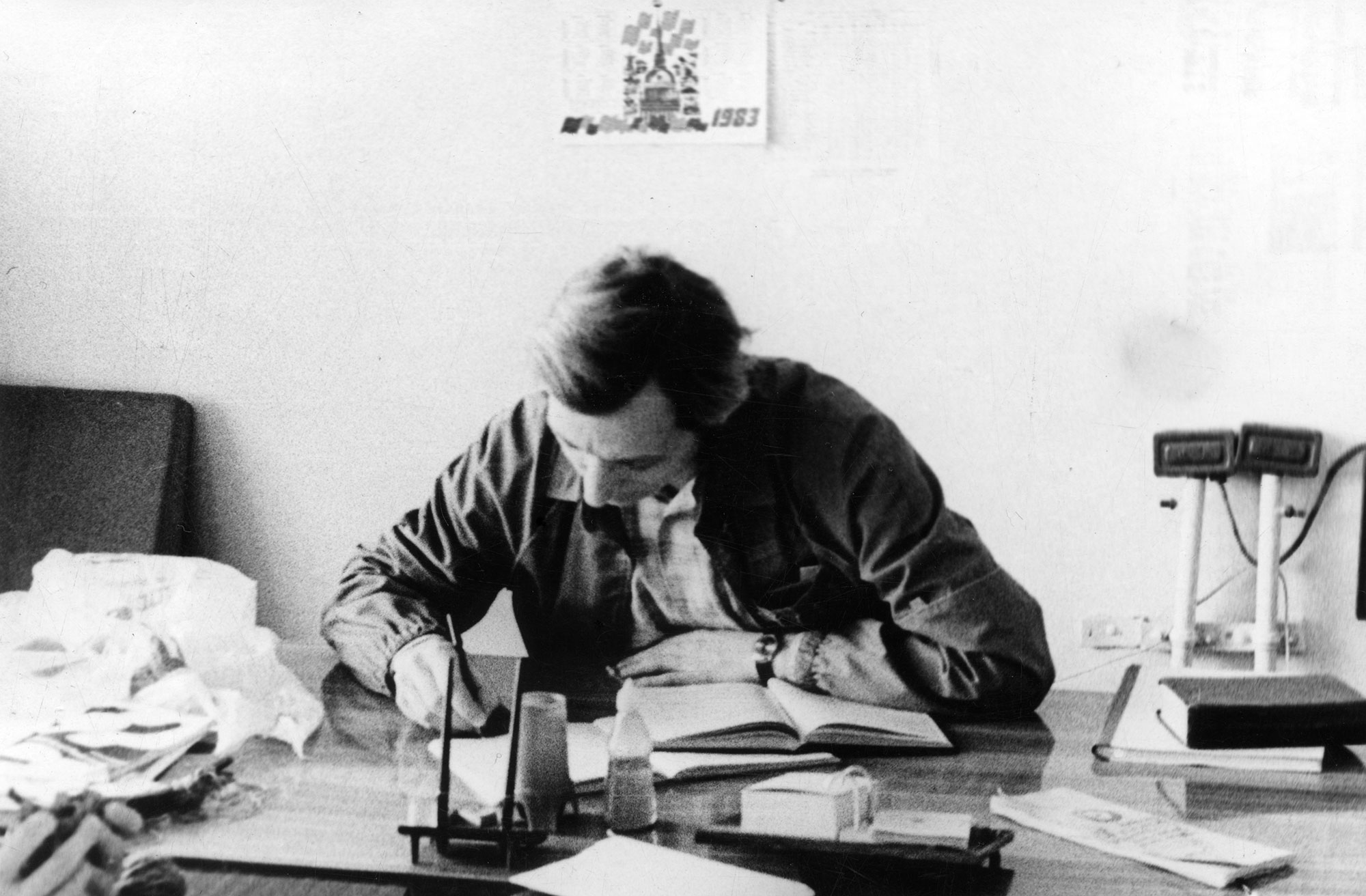 Бабкин Евгений Владимирович, кандтдат физико-математических наук, сотрудник лаборатория резонансных свойств магнитоупорядоченных веществ Института физики им. Л.В. Киренского Сибирского отделения Академии наук СССР. Фото 1983 года.
