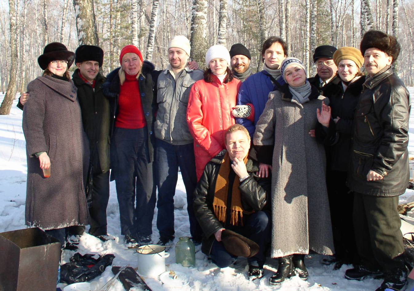 8 марта 2004 года. Сотрудники лаборатории молекулярной спектроскопии Института физики им. Л.В. Киренского Сибирского отделения Российской академии наук (ИФ СО РАН). Слева направо: Прищепа О.О., Крылова С.Н., Крылов А.С., Шестаков Н.П., Пястолова Ю.В., Шабанов В.Ф., Гуняков В.А., Баранник А.В., Гайнутдинова А.Ш., Подопригора Е.Н. Красноярск. Роща Академгородка.