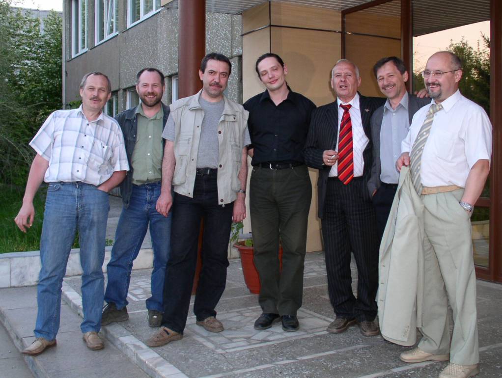 Фото на память. Сотрудники лаборатории молекулярной спектроскопии Института физики им. Л.В. Киренского Сибирского отделения Российской академии наук (в разные годы). Слева направо: Мысливец С.А., Назаров В., Вяткин В.П., Баранник А.В., Подопригора В.Г., Гуняков В.А., Ботвич А.Н. Снимок 2006 года.В день юбилея лаборатории. Красноярск.