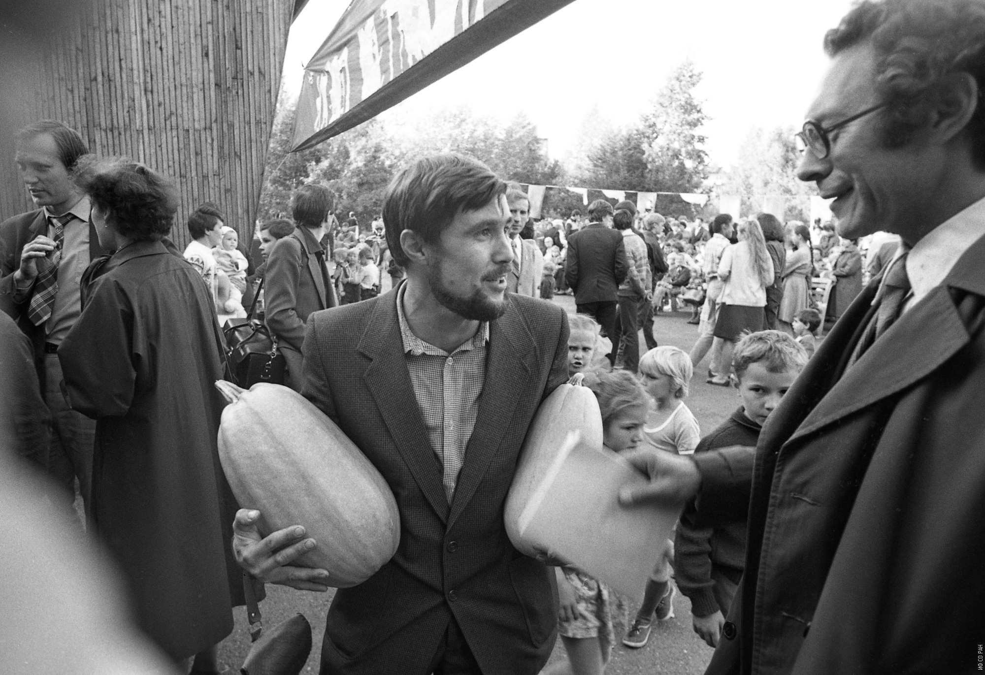 В 1980 году Институт физики им. Л.В. Киренского Сибирского отделения Академии наук СССР (ИФ СО АН СССР) получил землю под садоводческое хозяйство сотрудников института. Называлось садовое общество "Физик". С выращенными на своем дачном участке кабачками Блохин В.Ф.(слева) с Якубайликом Э.К. Фото 1986 года. Красноярск.
