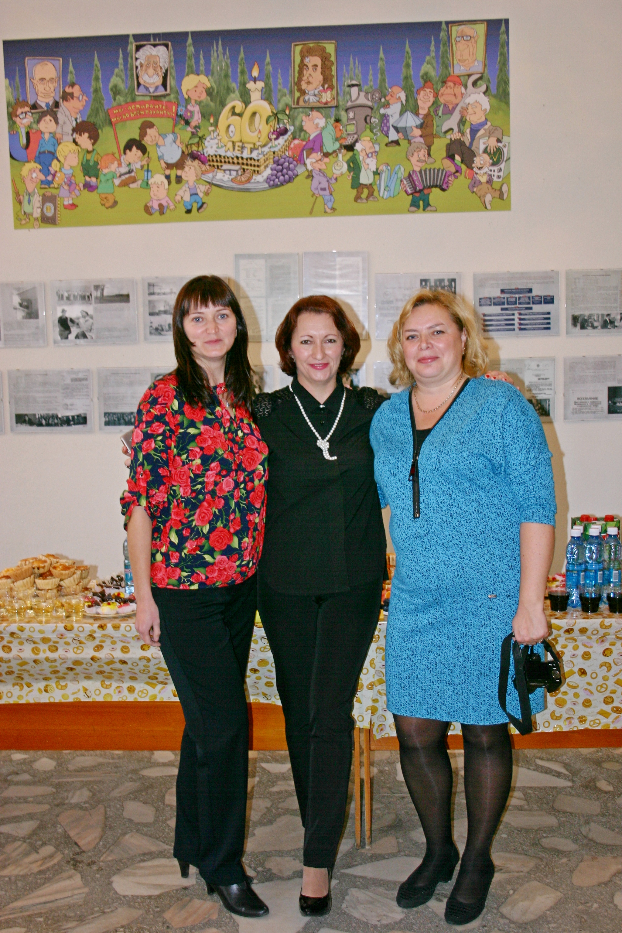12 октября 2016 года. Институту физики им. Л.В. Киренского Сибирского отделения Российской академии наук (ИФ СО РАН) исполнилось 60 лет. Сотрудники института в перерыве торжественного заседания в честь этой даты. Слева направо: Прищепа О.О., научный сотрудник лаборатории молекулярной спектроскопии, Бондарева Е.В., помощник директора института, Романова О.Б. , научный сотрудник лаборатории резонансных свойств магнитоупорядоченных веществ. Красноярск.