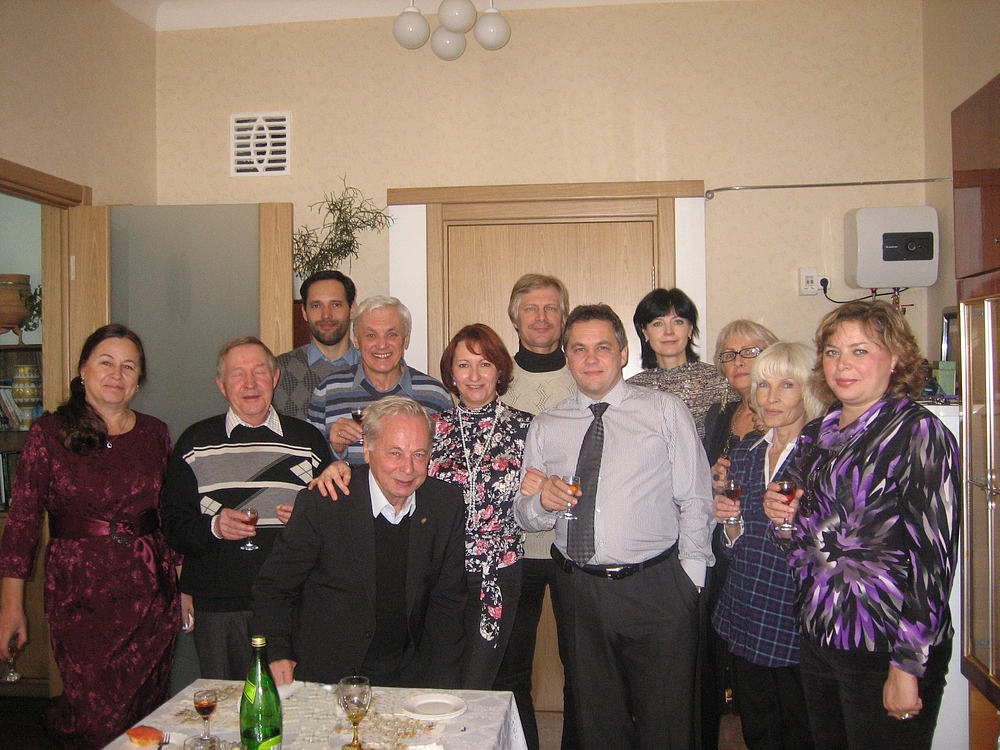 18 ноября 2011 года. Исполняющему обязанности директора Института физики им. Л.В. Киренского Сибирского отделения Российской академии наук (ИФ СО РАН) Волкову Н.В. исполнилось 50 лет. Юбиляра поздравляют сотрудники института. Фото на память. Сидит: Петраковский Г. А. В первом ряду слева направо: Дрокина Т. В., Степанов Г. Н., Панкрац А. И., Бондарева Е. В., Волков Н. В., Абрамова Г. М., Романова О. Б. Во втором ряду слева направо: Тугаринов В. И., Великанов Д. А., Удод Л. В., Саклакова Н. П. Красноярск.