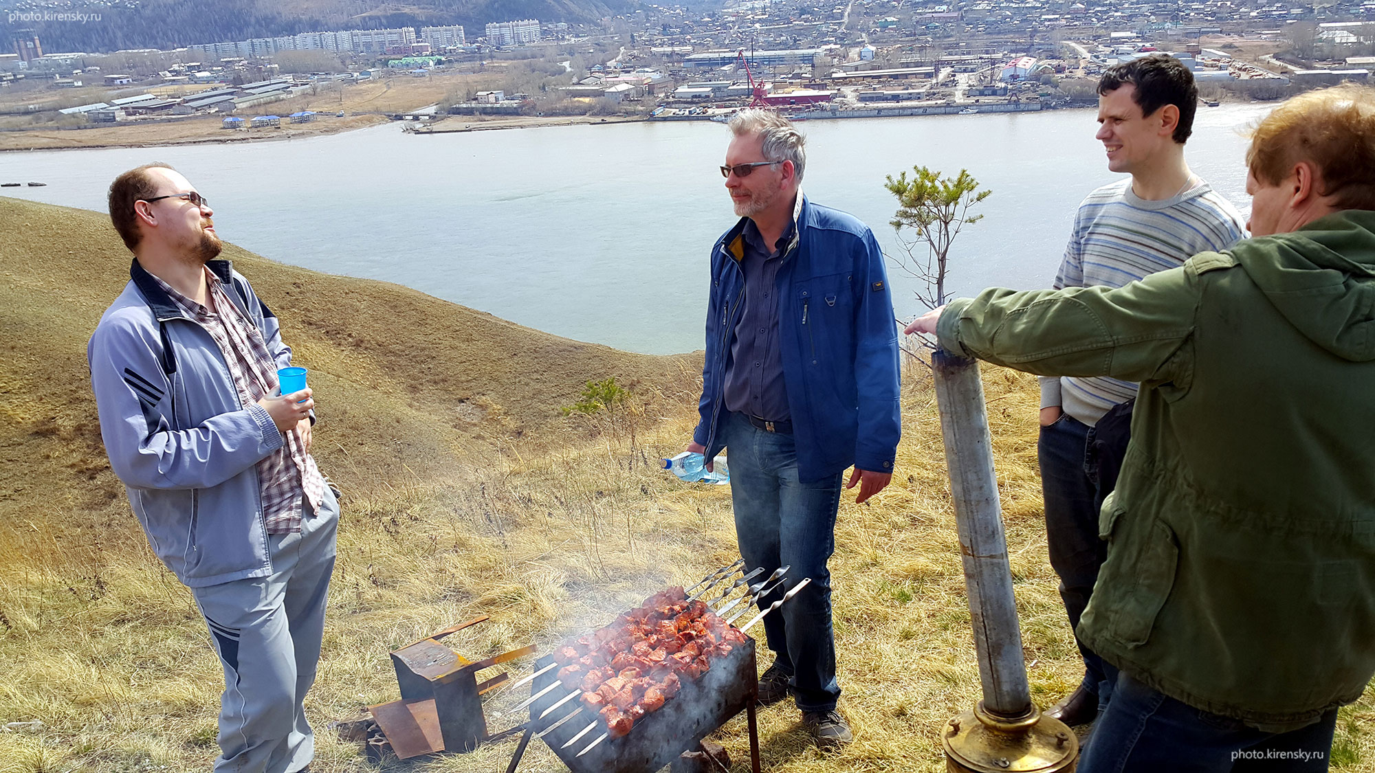 2015 год. Сотрудники лаборатории физики магнитных явлений Института физики им. Л.В. Киренского Сибирского отделения Российской академии наук после участия в весеннем субботнике по уборке территории института на берегу Енисея. Слева направо: Петров Дмитрий Анатольевич, Дудников Вячеслав Анатольевич, Иванцов Руслан Дмитриевич, Федоров Александр Семёнович.