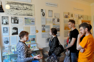 2016 год, май. Экскурсию по мемориальному музею академика Л.В. Киренского проводит главный научный сотрудник лаборатории физики магнитных явлений Института физики им. Л.В. Киренского Сибирского отделения Российской академии наук (ИФ СО РАН), профессор И.С. Эдельман. Красноярск.