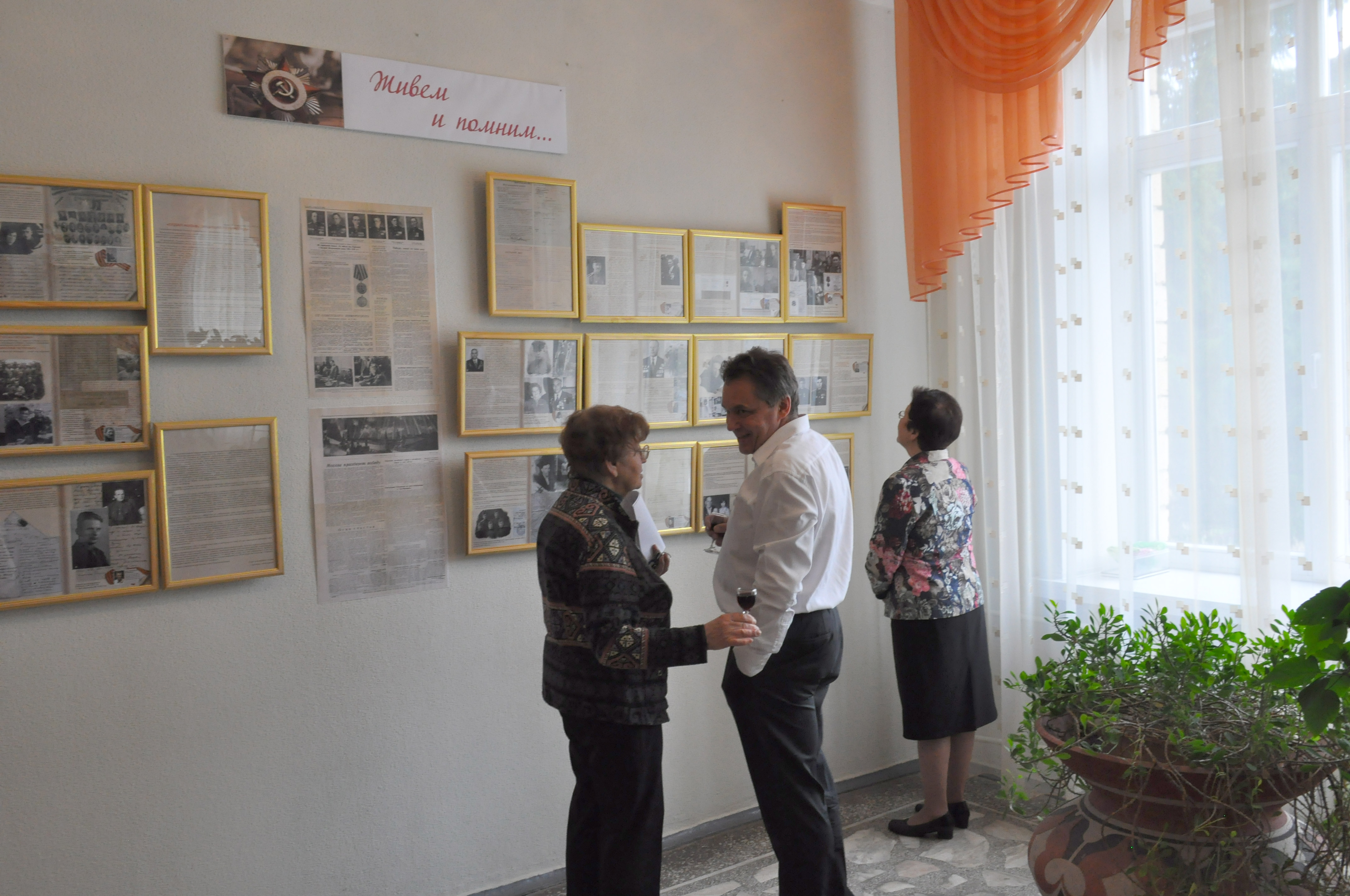 2015 год, 8 мая. Открытие стенда «Живем и помним…» в Институте физики им. Л.В. Киренского Сибирского отделения Российской академии наук (ИФ СО РАН), посвященного 75-летию Победы в Великой Отечественной войне 1941- 1945 гг.. У стенда профессор Эдельман И.С. и директор Института физики СО РАН Волков Н.В. Красноярск.