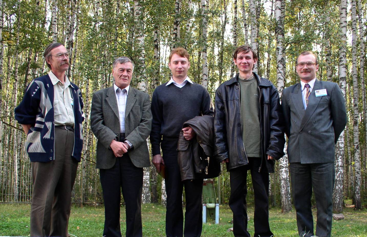 Сотрудники Института физики Сибирского отделения Российской академии наук (ИФ СО РАН), участники XXI Международной конференции "Эффекты релаксации в твердых телах". Слева направо: Горев М.В., Зиненко В.И., Бондарев В.С., Карташев А.В., Крылов А.С., Воронеж, 2004 год.