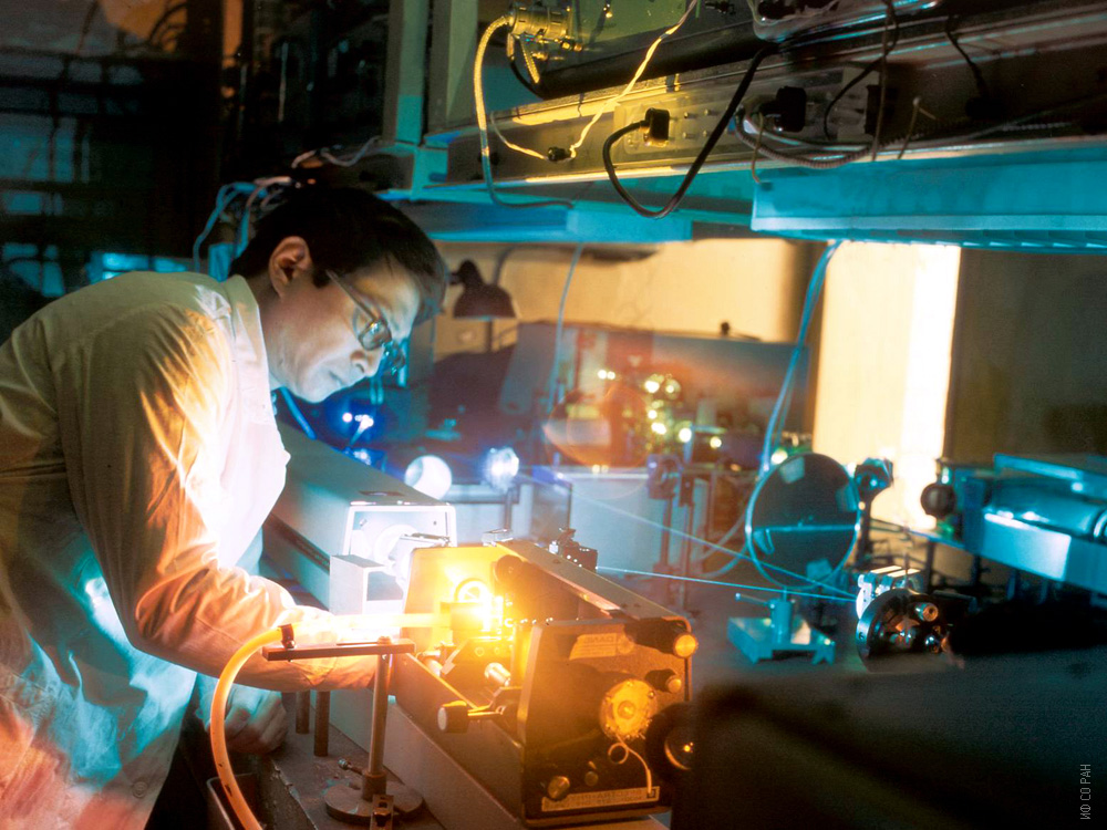 1981 год. На снимке сотрудники лаборатории когерентной оптики Института физики им. Л.В. Киренского Сибирского отделения Академии наук СССР (ИФ СО АН СССР). В первом ряду сидят (слева направо): Архипкин В.Г., Кодиров М.К., Мелкозерова Л.В., Тимофеев В.П., Попов А.К..- заведующий лабораторией, Перцева Л.В. В среднем ряду (слева направо): Подавалова О.П., Садовничий А.Е., Мысливец С.А., Лукиных В.Ф., Эпштейн В.Ш., Кияшко В.А., Слабко В.В, Им Тхек Де. В третьем ряду (слева направо): Болотских Л.Т., Высотин А.Л., Макаров Н.П., Александровский А.С. Красноярск.